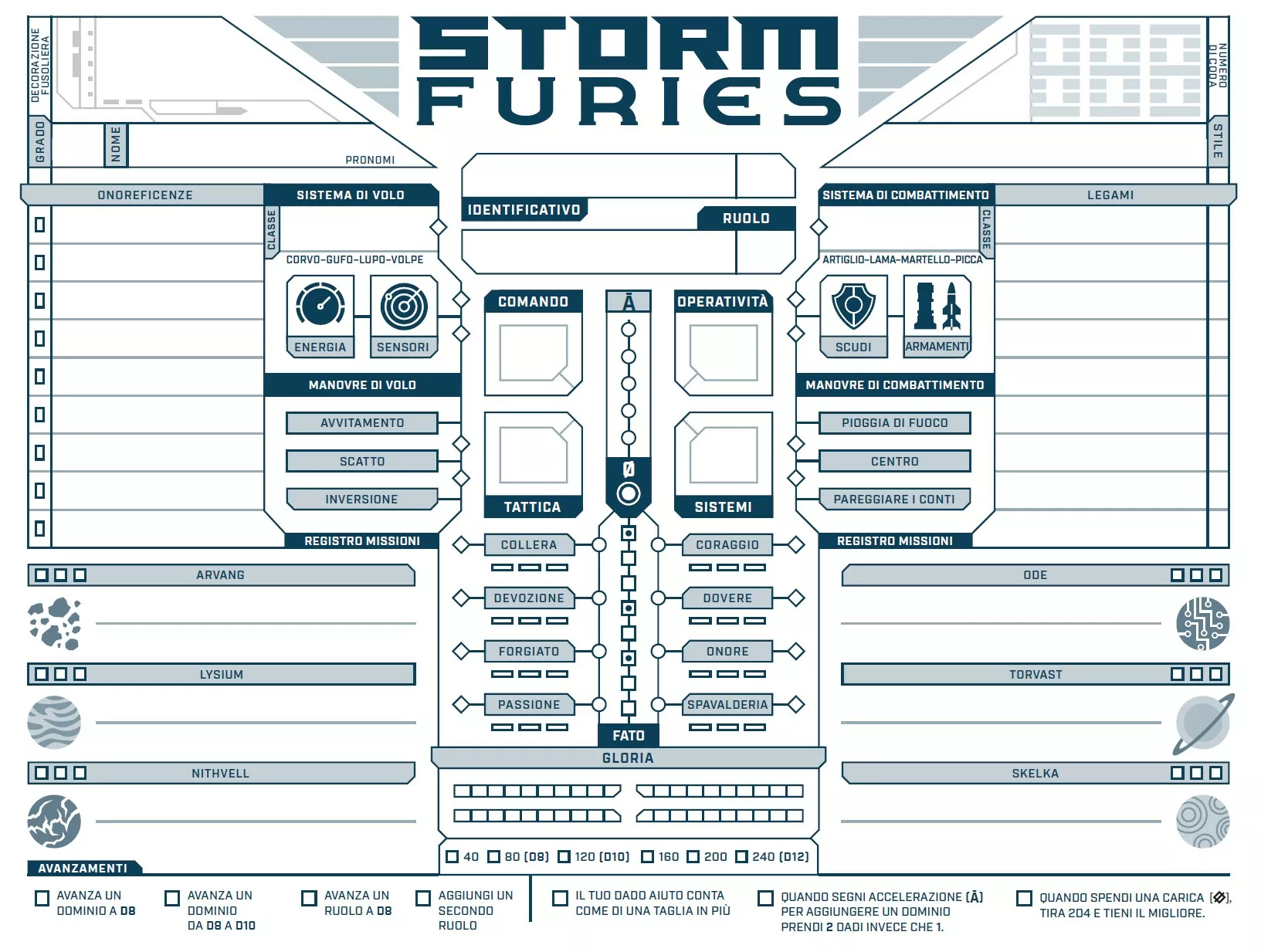 STORM FURIES adatta il sistema PARAGON a un mondo di audaci piloti di caccia stellari ispirati a Battlestar Galactica, Top Gun, X-Wing e Wing Commander.